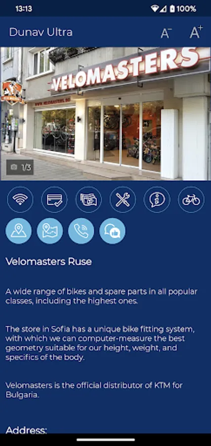 • Bike shops - geolocation of and details about bicycle repair services along the route