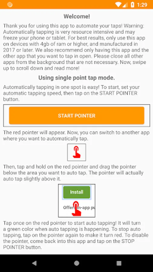 This app does not require root. It has no ads, and is completely free to use. It only works with Android 7 (Nougat) devices and higher, and does not require your device to be rooted. It works on 90% of apps and games on the market, as well as on the basic android system. There is an optional in-app upgrade to HabiTap pro which allows dual pointer mode.
