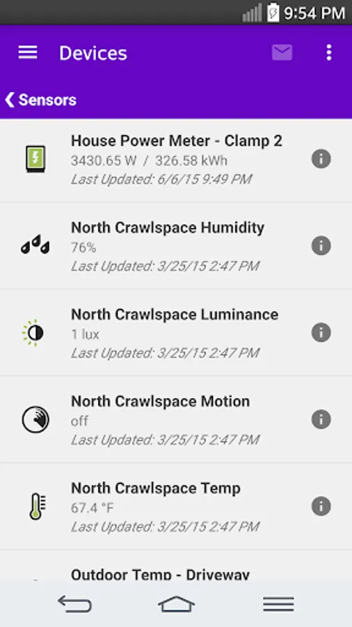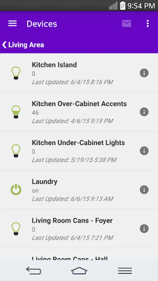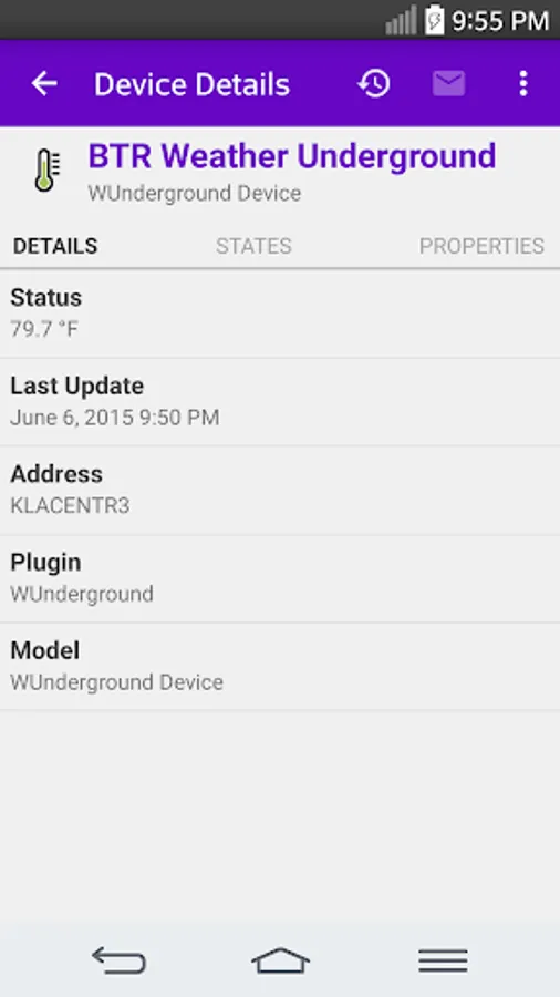 As you would expect from an Indigo client, Domotics Pad allows you to view and interact with your Indigo devices... turn on and off lights, ramp up your ceiling fan, water your yard and much more. You can view the details of devices - view all of their custom states and even go back in history and see how those states have changed.