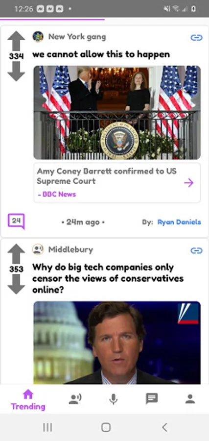 Feed - Scroll through all of the trending issues currently going on in America. View all of the latest news in real time, and express your opinions on them for the country to hear!