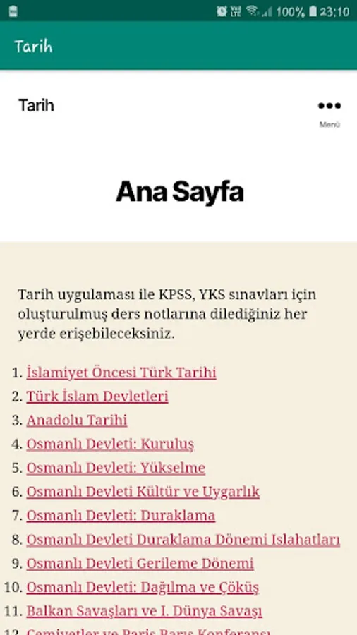 OSYM Exams, KPSS Exam, TYT Exam, AYT Exam prepared for the History Lecture Notes, you will be with you wherever you go. No internet connection is required to access the lecture notes.