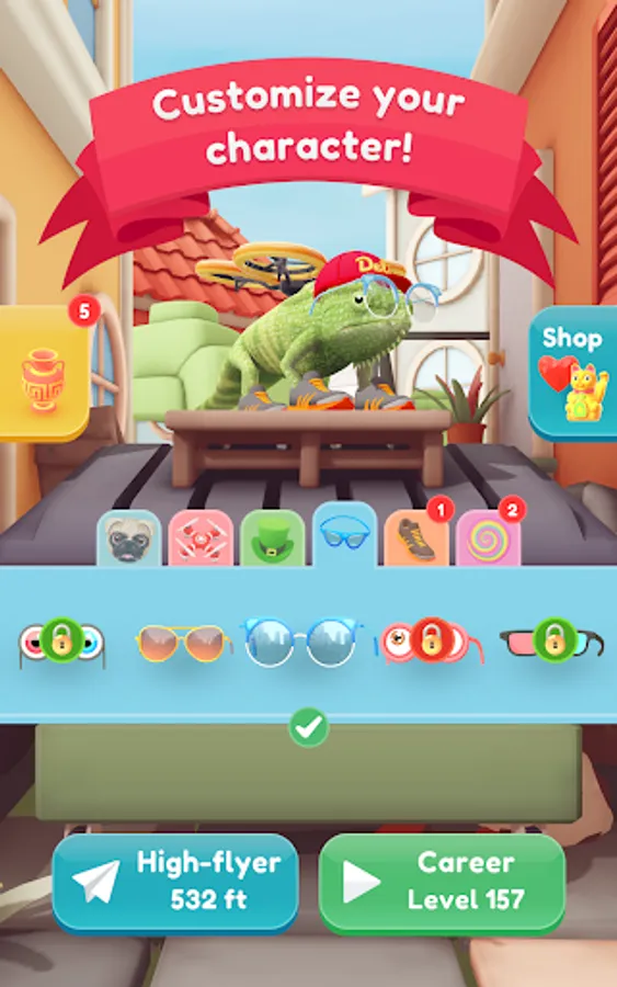 Earn cash for each successful delivery and use it to unlock new animals and gear: powerful drones, cool glasses, stylish hats and more!