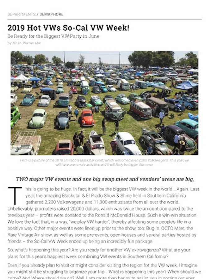 Dedicated to promoting and preserving all aspects of the Volkswagen air-cooled hobby for enthusiasts worldwide.