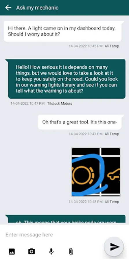 Our customer App allows you to schedule appointments, get updates on work in progress, view our latest offers and have two way messaging with the workshop. The app also has useful features such as a library of warning lights and their possible meanings, local fuel prices, and a Frequently Asked Questions section."