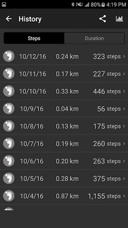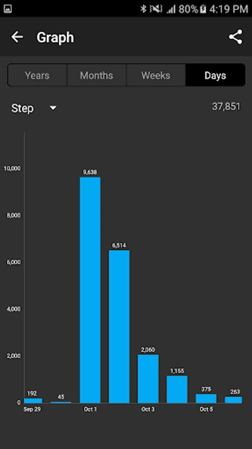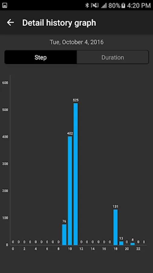 ✔ Advanced graph and history for steps: yearly, monthly, daily and hourly (click the circle)