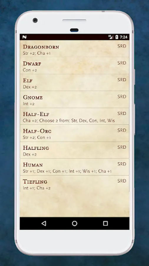 Here you will find all the character info feaured in the System Reference Document for D&D 5th edition.