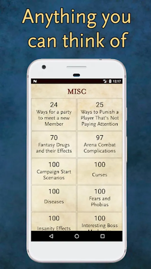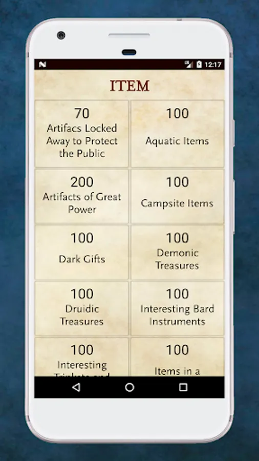 • Items from Legendary to Mundane, you'll never need to design an item on the spot again.
