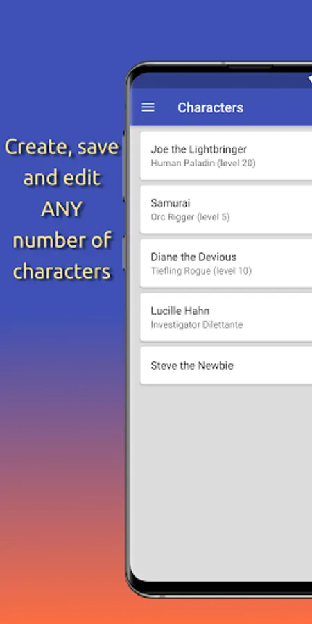 Dungeons & Dragons 5th edition? Any edition. Pathfinder? No problem. Shadowrun or maybe Call of Cthulu? Yep, literally any RPG and setting! Either you are a newbie or an experienced player you will find our completely free app very useful.