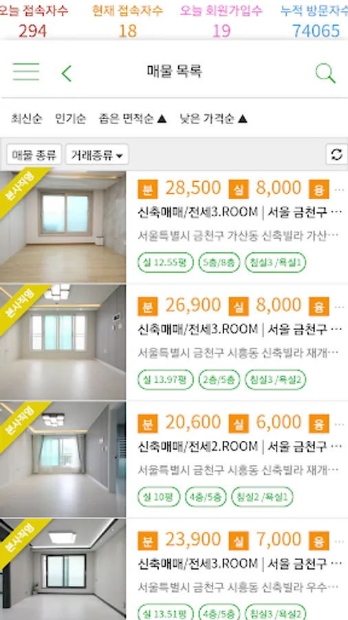 -> Room rooms, sale price, ipjugeum, area, themes, income type investments gap, a small investment you can search by various criteria.