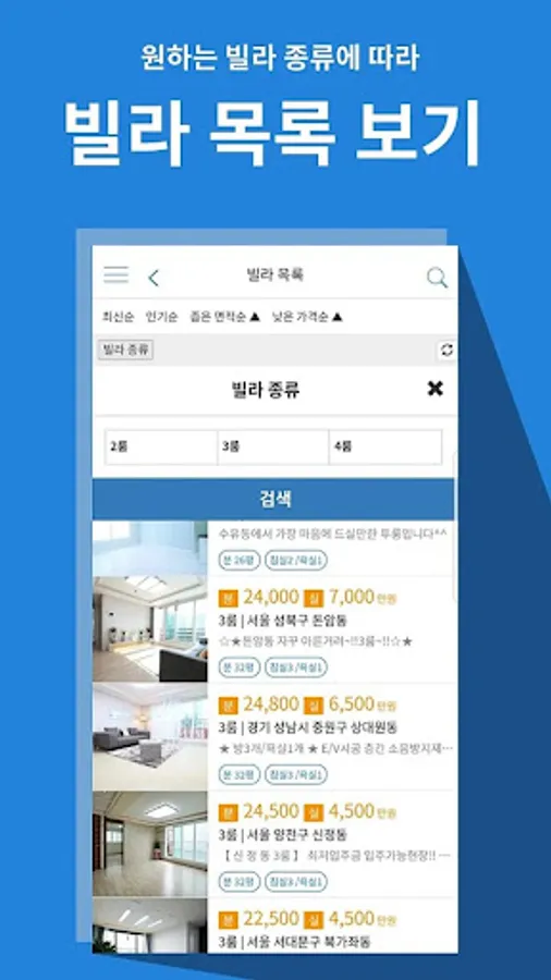 You can search by various themes such as newly-married couple recommendation villa, station area villa, popular villa, luxury villa, duplex villa, new villa gap investment, villa investment, officetel, remaining generation special price.
