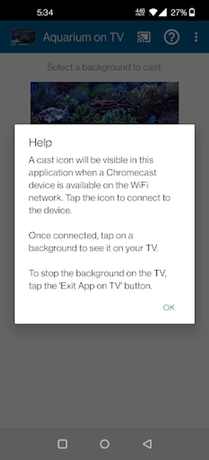 • Cast high quality video backgrounds/live wallpapers to your TV - you can pick from two lively aquariums!