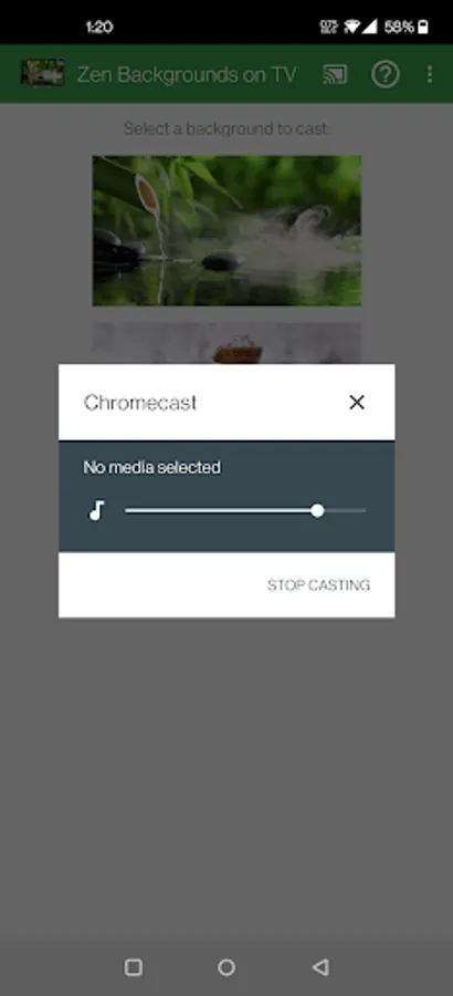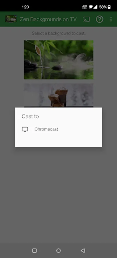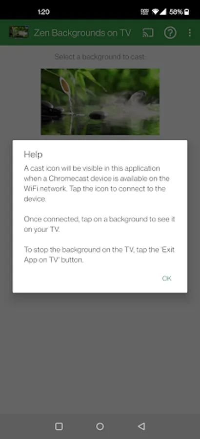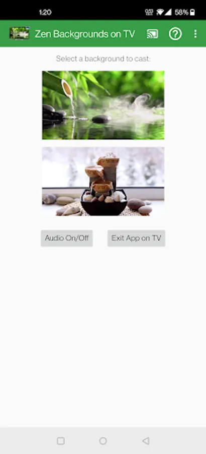 • Cast live backgrounds to your TV - you can pick a calm garden scene or a relaxing indoor fountain.