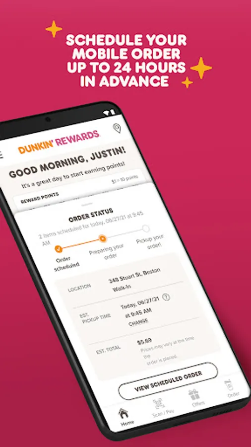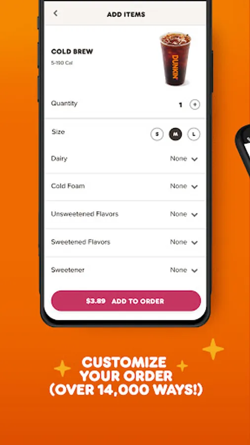 Make it your own! There’s over 14,000 ways to customize your order when you order ahead on the app. Plus, Dunkin’ Rewards members can save their favorite orders and Dunkin’ locations, and schedule their mobile orders up to 24 hours in advance.