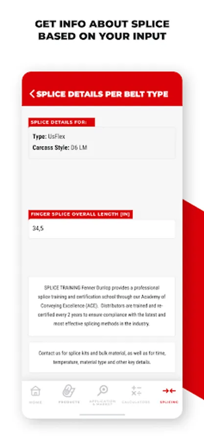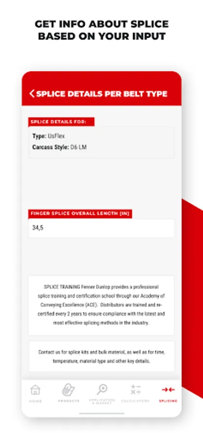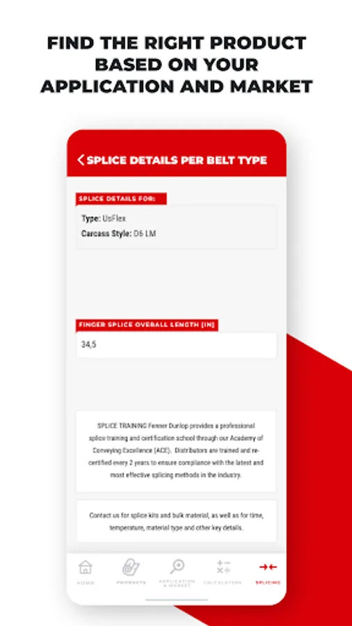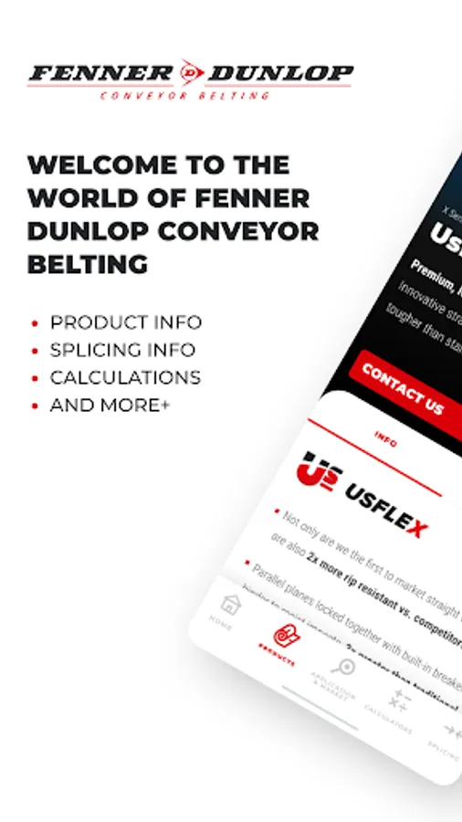 Our technicians work hard to develop conveying solutions that can meet the most challenging and wide-ranging physical demands. If a conveyor belt fails, downtime and loss of production will be costly. Picking the right belt and splicing method is crucial. Fenner Dunlop App opens doors to quick and accessible information on our product range, splicing manuals as well as to several practical calculations that will enable you to get the best performance