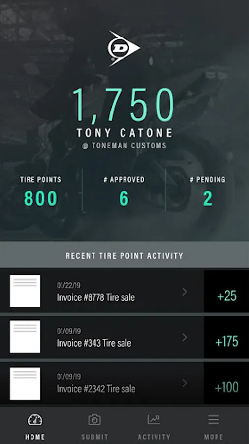 The Dunlop Pro Dealer app is the quickest way for our Dunlop Pro Dealers to submit customer tire invoices for approval to earn rewards points.