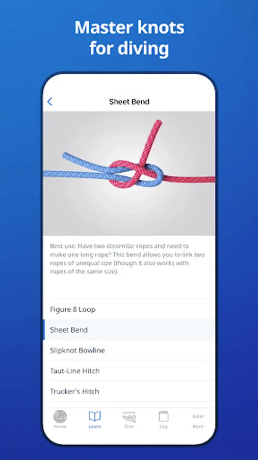 Refresh your hand signals, view PADI courses, and learn how to tie pro-level knots in the Learn section.