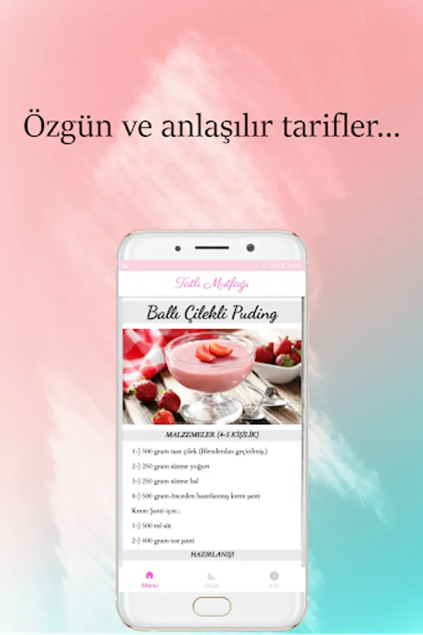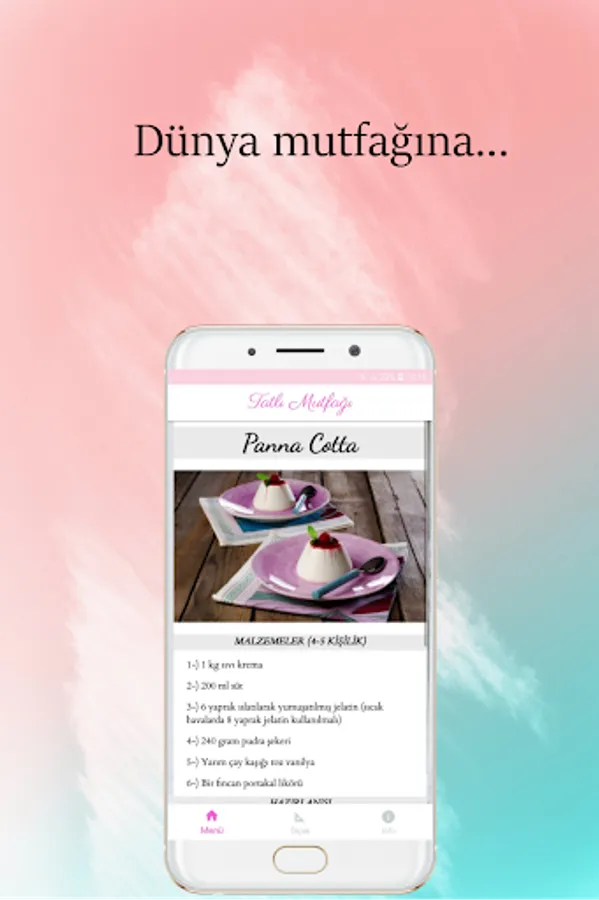 In the "Sweet Kitchen" application, many delicious, practical, creative and interesting delicious dessert and cake recipes are available without internet. You can access these recipes from anywhere, anytime, if you have your phone with you. Are you dying for a cake or are you thinking about your guests coming to the next day or what kind of desserts I can make? "Dessert World" is at your service with original dessert and cake recipes. With categorized recipes, you can easily find any kind of dessert and cake you want.