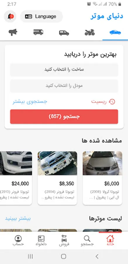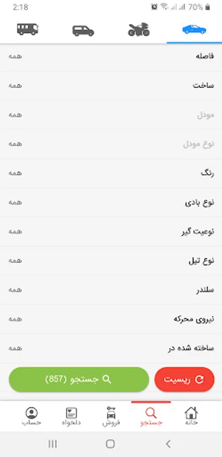 By going to the search section of DN Motar - دنیای موتر, you can use the filter to find your favorite vehicle.