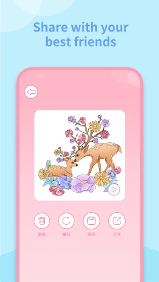 Each picture is marked with numbers, choose the painting you like, click to color in the numerical order to complete the creation, and enjoy this decompressed painting art. When you're done creating, you can also generate a short video to share with your friends about the coloring process.
