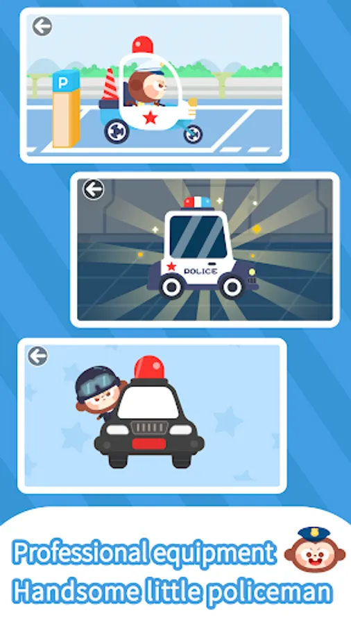 DuDu's Police Station simulates the police crime-solving environment, equipped with professional equipment, where children can transform into handsome little police officers, drive police cars to handle various emergencies, and help people in difficulties.Through different case scenarios, the baby's ability to analyze and solve problems is cultivated, thereby enhancing the baby's self-protection awareness. Police role-playing game, I believe you will like it!