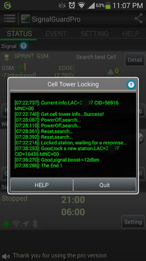 SignalGuardPro real-time monitoring signal quality and working condition of your cell phone.It can give beforehand warning with ring,vibration and LED three methods when signal abnormalities occurs,such as entering places like subway,basement,computer room and tunnels or caused by uncorrectly baseband settings. And it can automatically restore signal networking within 6 seconds(fastest), in accordance with the signal parameter settings. The whole restore process will be recorded in database which could be checked later.