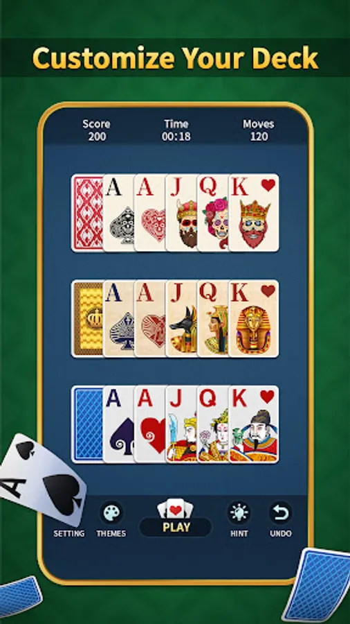 • Customizable cards and radiant backgrounds offer a unique solitaire experience
