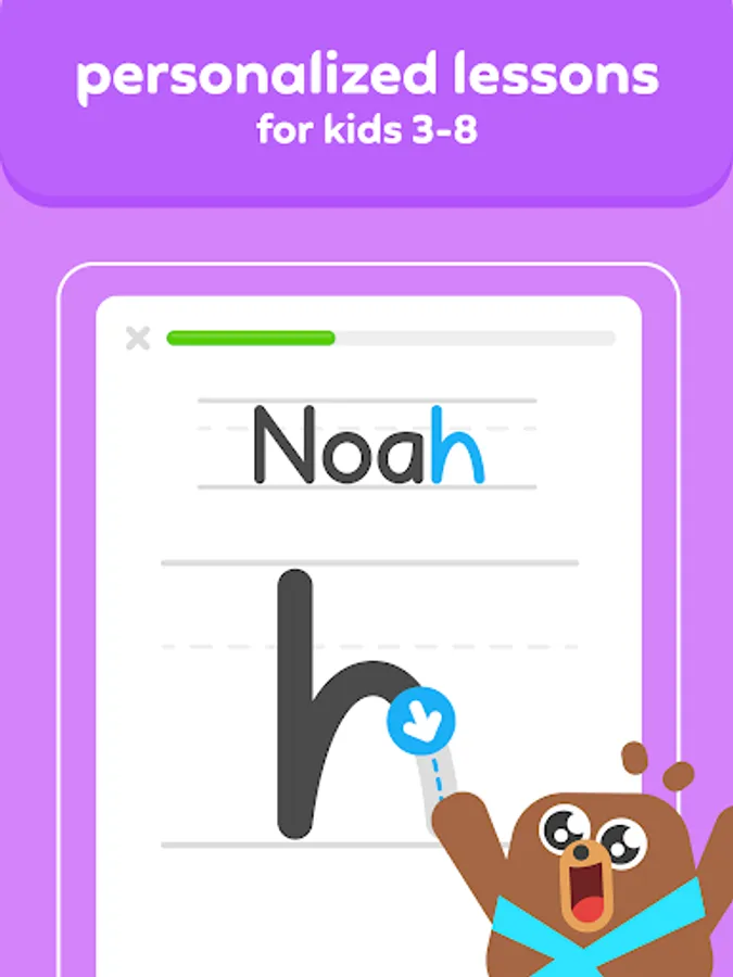 The Duolingo ABC kids reading app offers over 700 hands-on reading lessons designed to help kids learn and love to read. We make learning to read both fun and effective with lessons and educational games for kids that include multi-sensory activities, such as tracing, drag-and-drop prompts and more. Our educational learning app offers personalized lessons so your child can learn at their own pace.