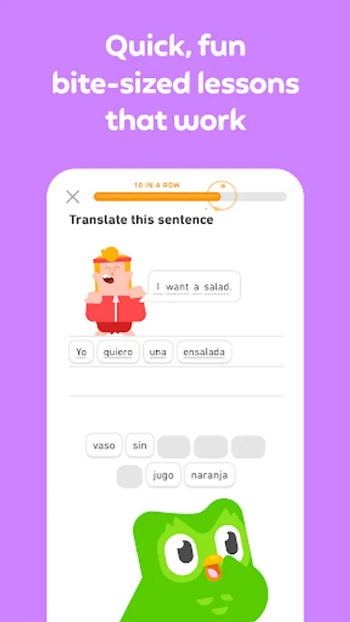 If you like Duolingo, try Super Duolingo for 14 days free! Learn a language fast with no ads, and get fun perks like Unlimited Hearts and Monthly Streak Repair.