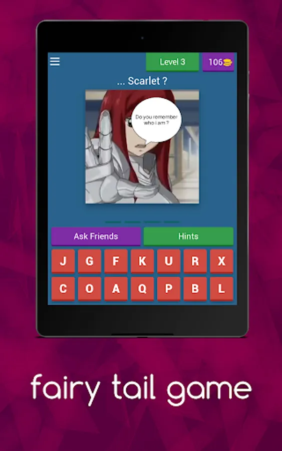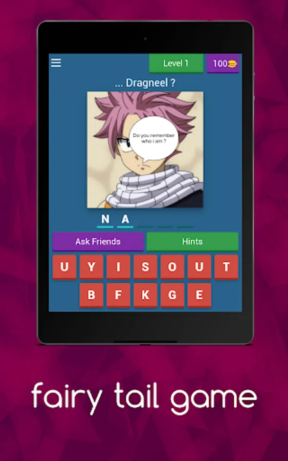 If you are a fan of Fairy Tail anime and want to learn about the characters' names, this is what you need. Take a look at the picture suggestions we give and guess their names correctly. It's simple but it's a pity if you don't try, pass the levels and become the winner.