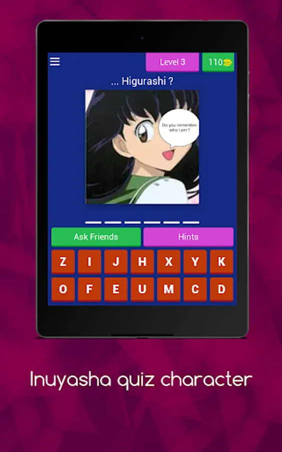 Let's experience the quiz game about the characters in Inuyasha. Pass the easy and hard levels and win. Share with your friends how you got the best results.