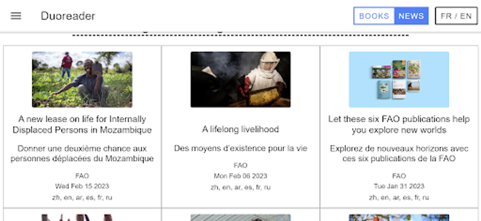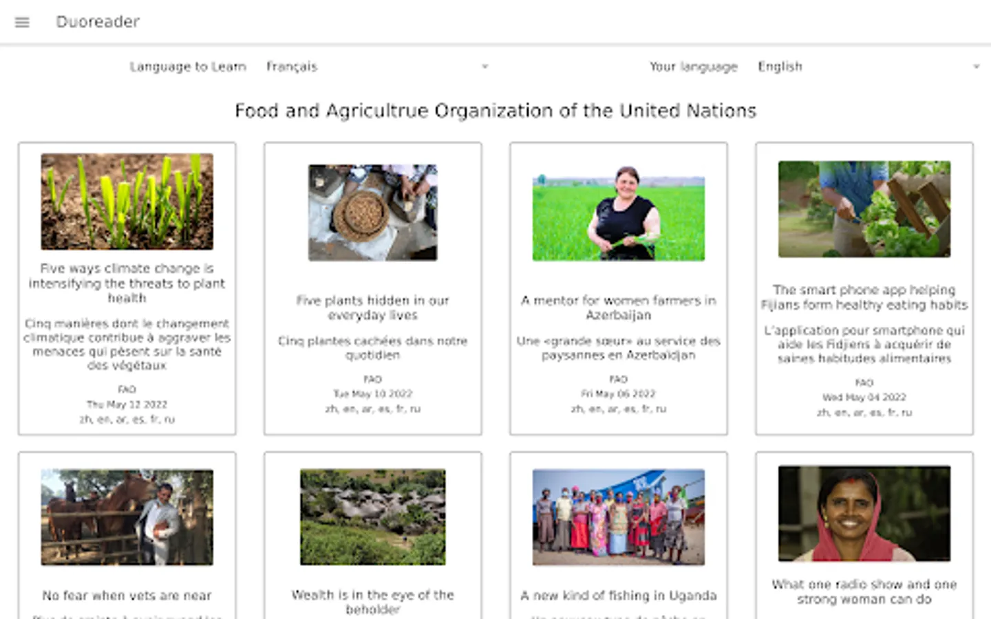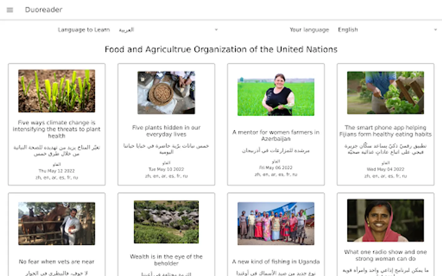 A growing list of modern articles are also made available. You can now read multi-lingual stories published by the United Nations. Give it a try!