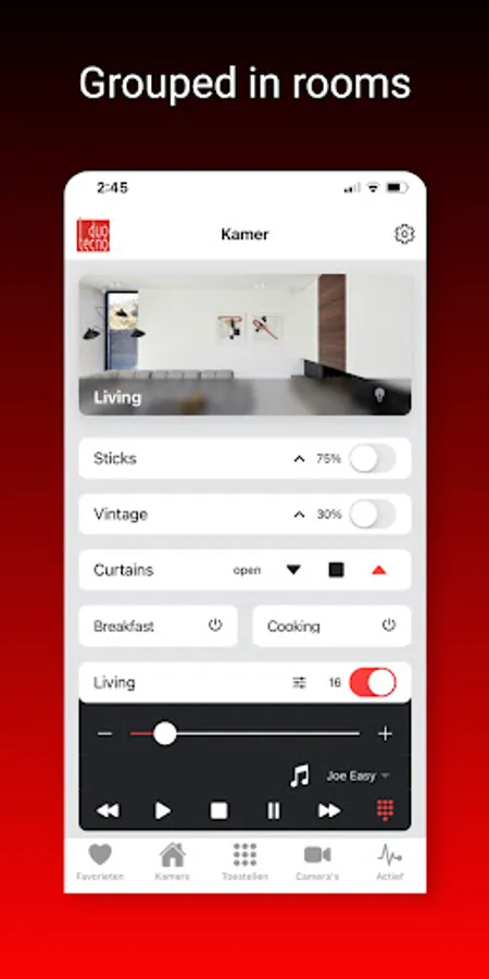 Change your home's moods, alarms, events, screensavers, room pictures, home screen, etc...