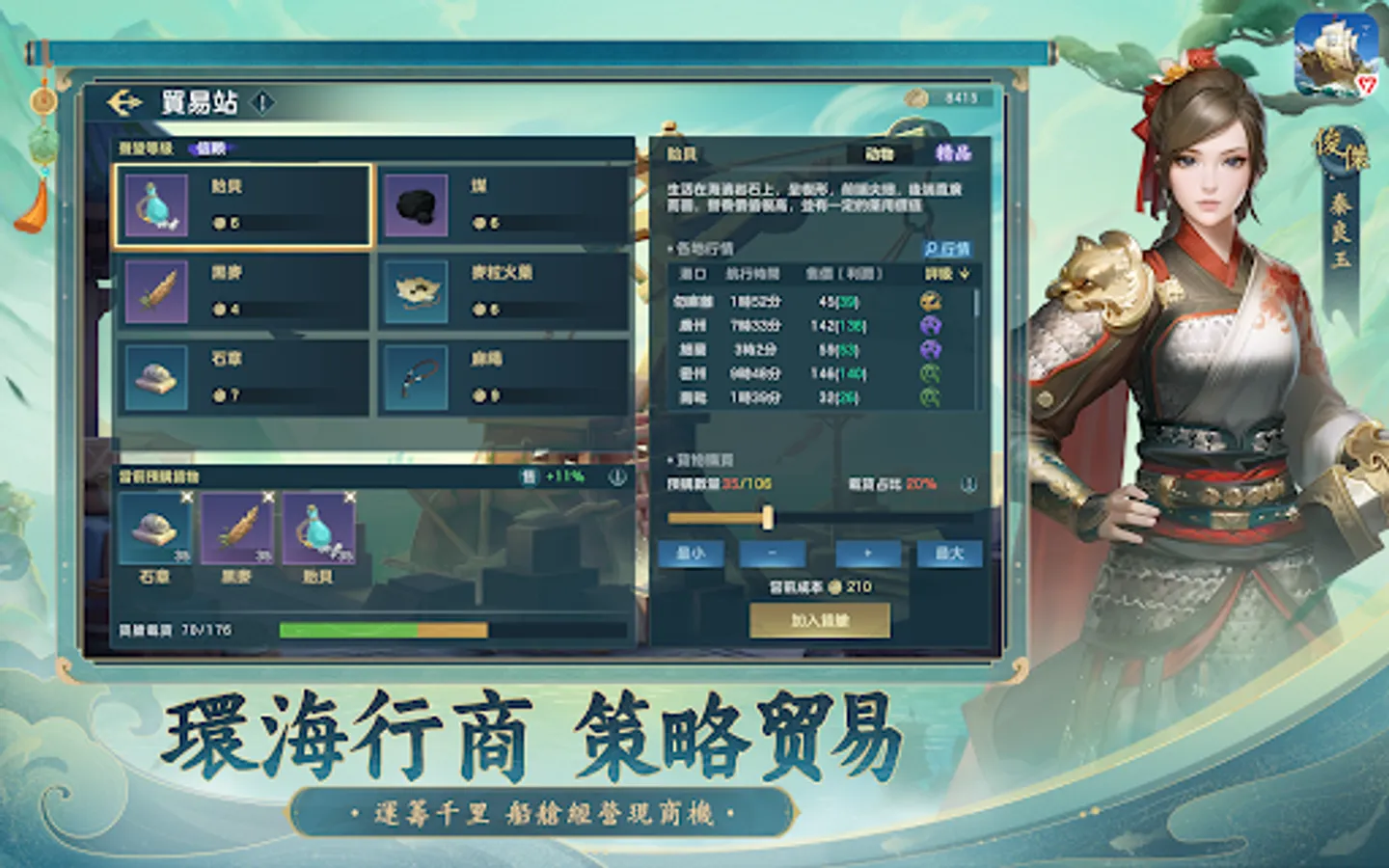 "Floating Life in the Canghai" is an oriental navigation card development mobile game. The world's three major shipping routes and more than 20 trading ports are waiting for the captains to open up business.