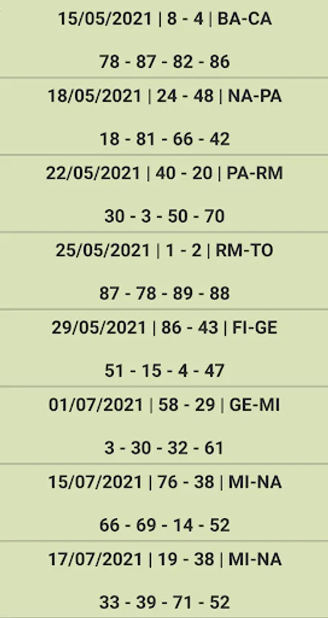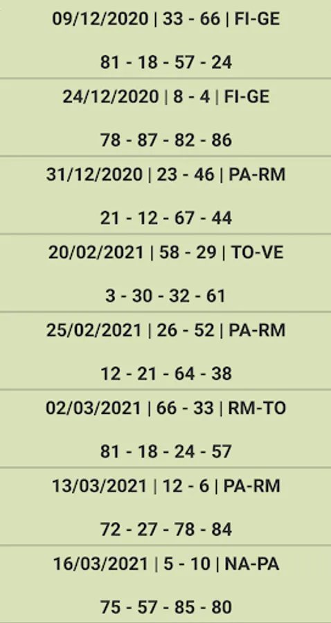 The program carries out the search starting three months before the last extraction contained in the database (the National Wheel is excluded). The predictions are to be put into play for a maximum of six / seven draws.