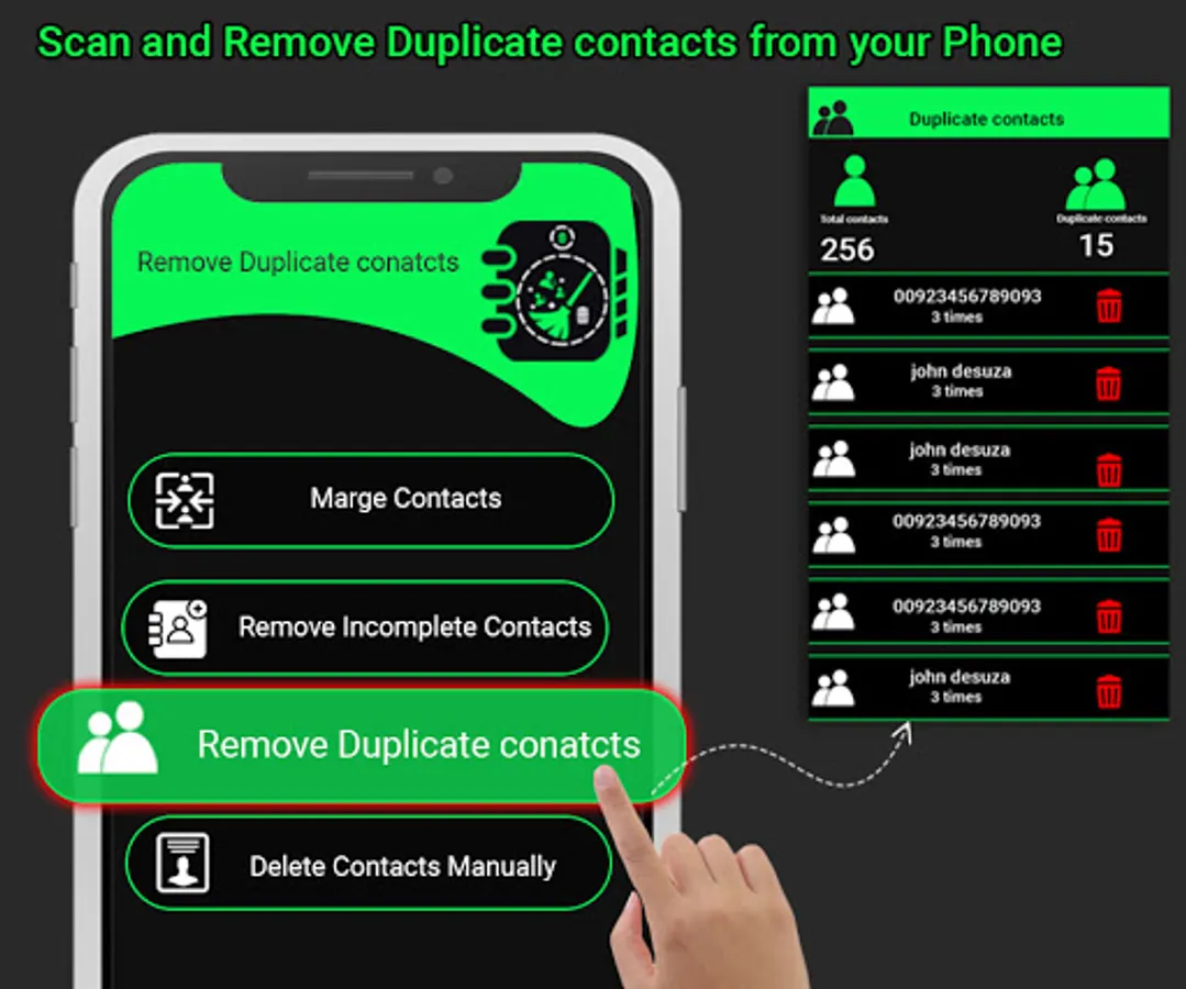 Overviewour duplicate contact remover and contact fixer is an application which will find duplicate contacts and duplicate phone number from your android phone book. It’s a duplicate contact finder and duplicate contact deleter app which find identical contacts and replicated contacts from you contacts phone book to clean you phone from duplicated contacts. Its duplicate contact remove and contact fixer app that delete unwanted and copy contacts. In now a days our android phone is always full social media apps each social media app synchronize separately and create its own contact that will create 4 to 5 copies of each contacts in your phone. Then we cannot find each contact separately to delete its copies one by one then our app duplicate contact finder and duplicate contact remover is best option to handle such a situation. Because our app duplicate contact cleaner and duplicate contract deleter find and search all duplicate contacts in no time and then delete those duplicate contacts in just one click.