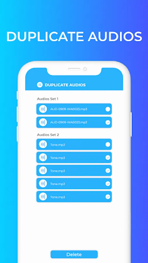 Duplicate file cleaner - Delete Duplicate Audios app can be a useful features for managing and organizing multiple files. By using a duplicate file cleaner app,