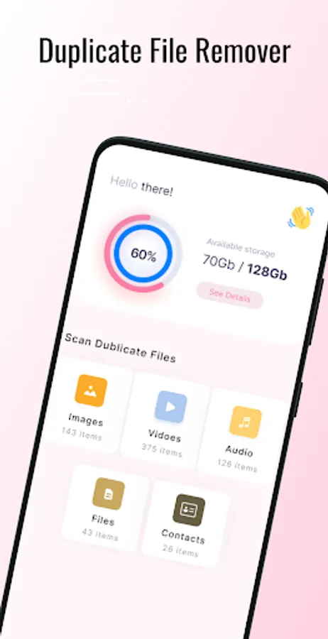 The duplicate file detector helps to find and remove duplicate media from your android phone and clean storage space.