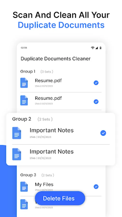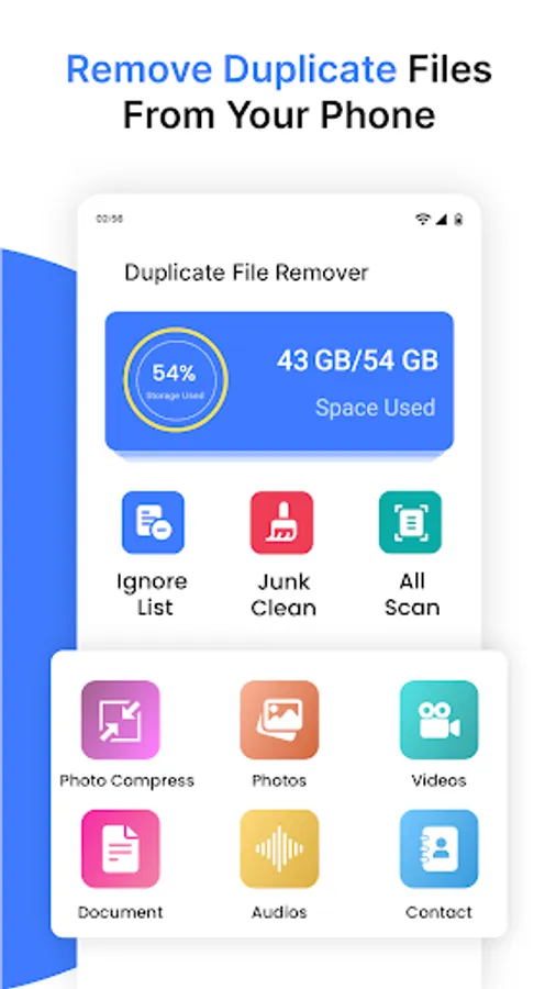 Photo Duplicate Cleaner App is easy to use app that can easily scan your all phone storage for duplicate and similar photos, videos, audios, documents and contacts. After finding all the duplicate files, you can easily Delete Duplicate photos, videos, documents and audio files from your device.
