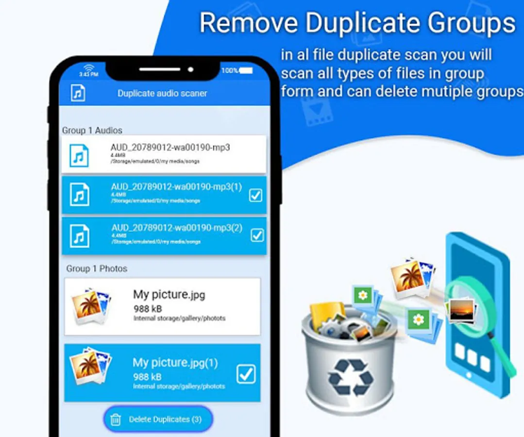 Duplicated songs and audio remover: by using duplicate mp3 remover or duplicate music file remover feature you can only remove duplicate mp3 or duplicate music from your phone;