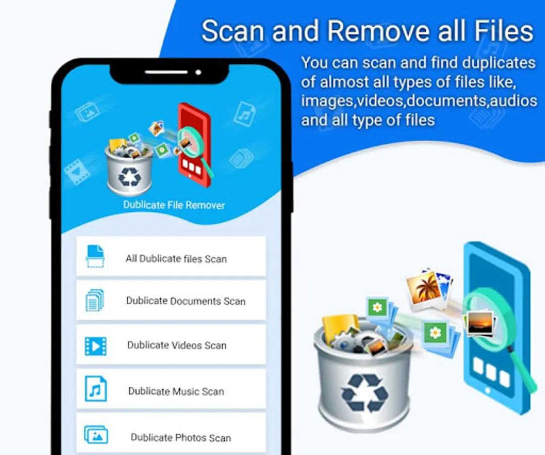 Duplicate file finder and dual file remover: find duplicate files free by using this duplicate file cleaner app. sometime our android phone performs slow due to lack of memory because of some duplicate files .the best solution to this problem is our app duplicate file cleaner and fixer. This duplicate file detector and duplicate file deleter app will scan your android phone for all duplicated files with their memory and you can clean duplicate files and delete duplicate pictures easily. It’s an amazing app or program to find duplicate files.