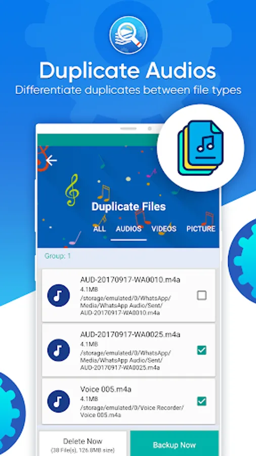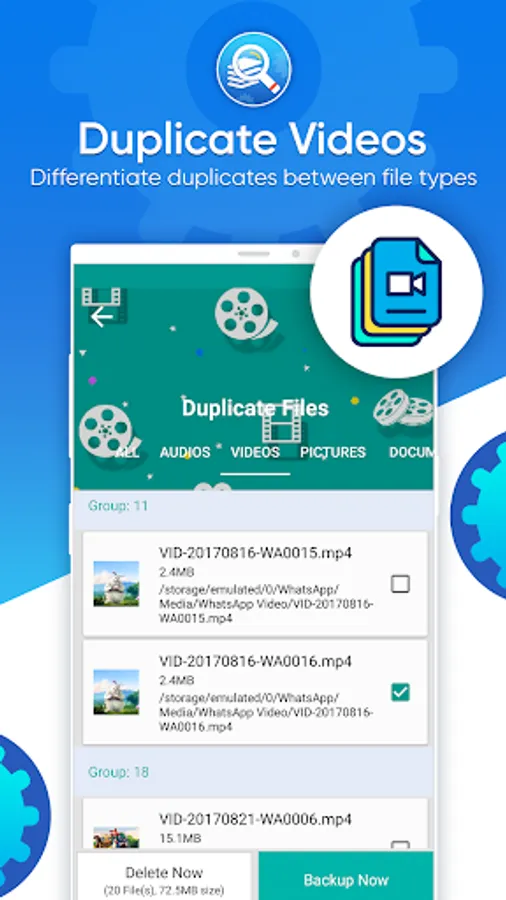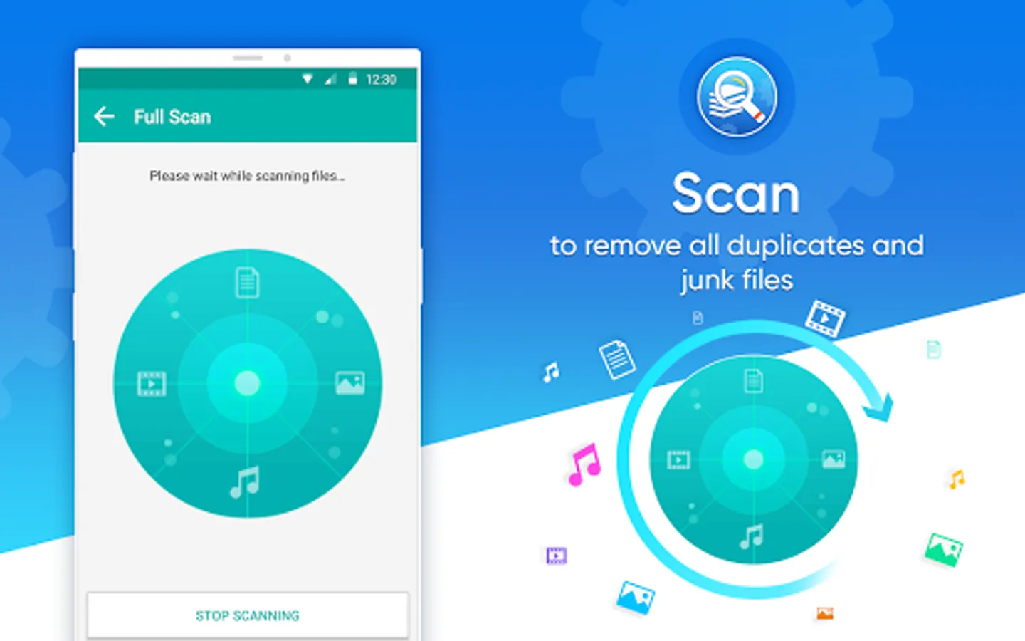 Full Duplicate Scan - This free duplicate file cleaner runs a scan of your Android device to search all kinds of duplicate files.