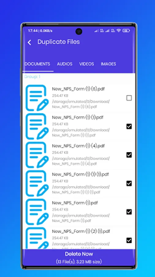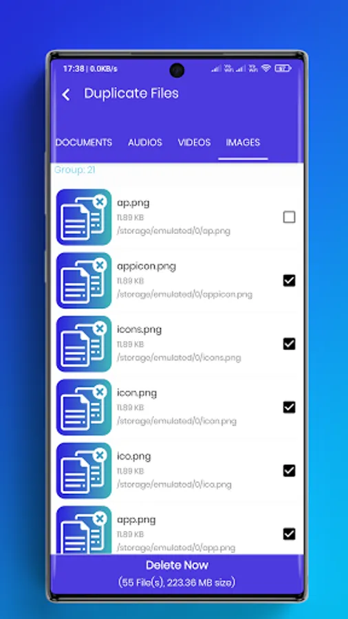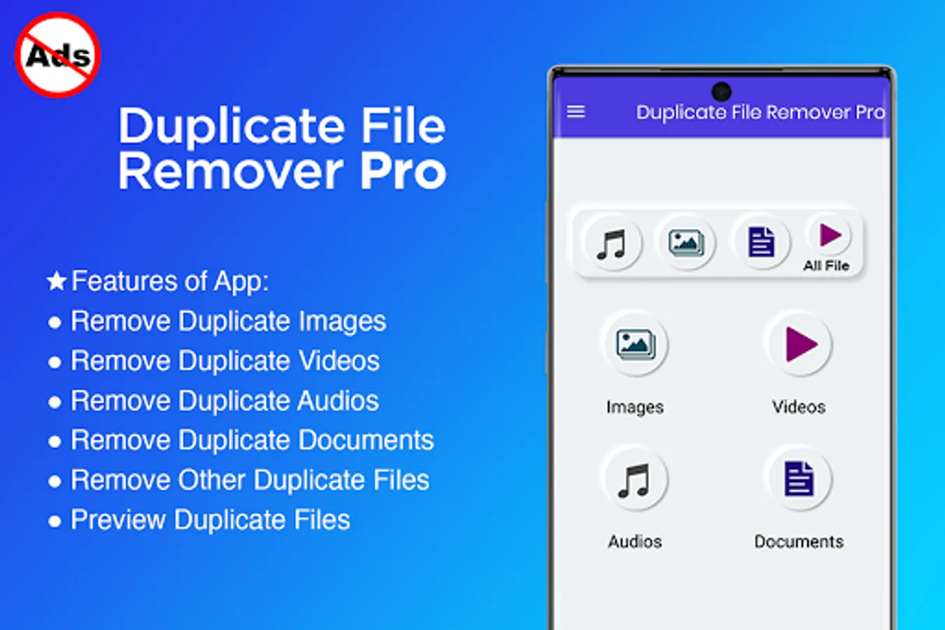 Duplicate File Remover Pro the application removes all duplicate media audio, images, Documents and videos files present in you are internal to phone memory and external storage to SD card.