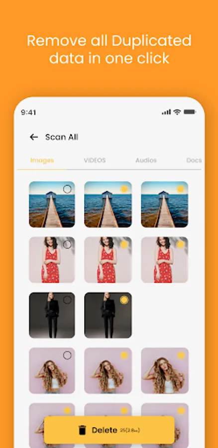 Scan All: The duplicate file fixer app allow the user to scan the full device immediately and find duplicates in seconds. The replicate file finder app also helps the user to find similar media files with a single scan and find identical files.