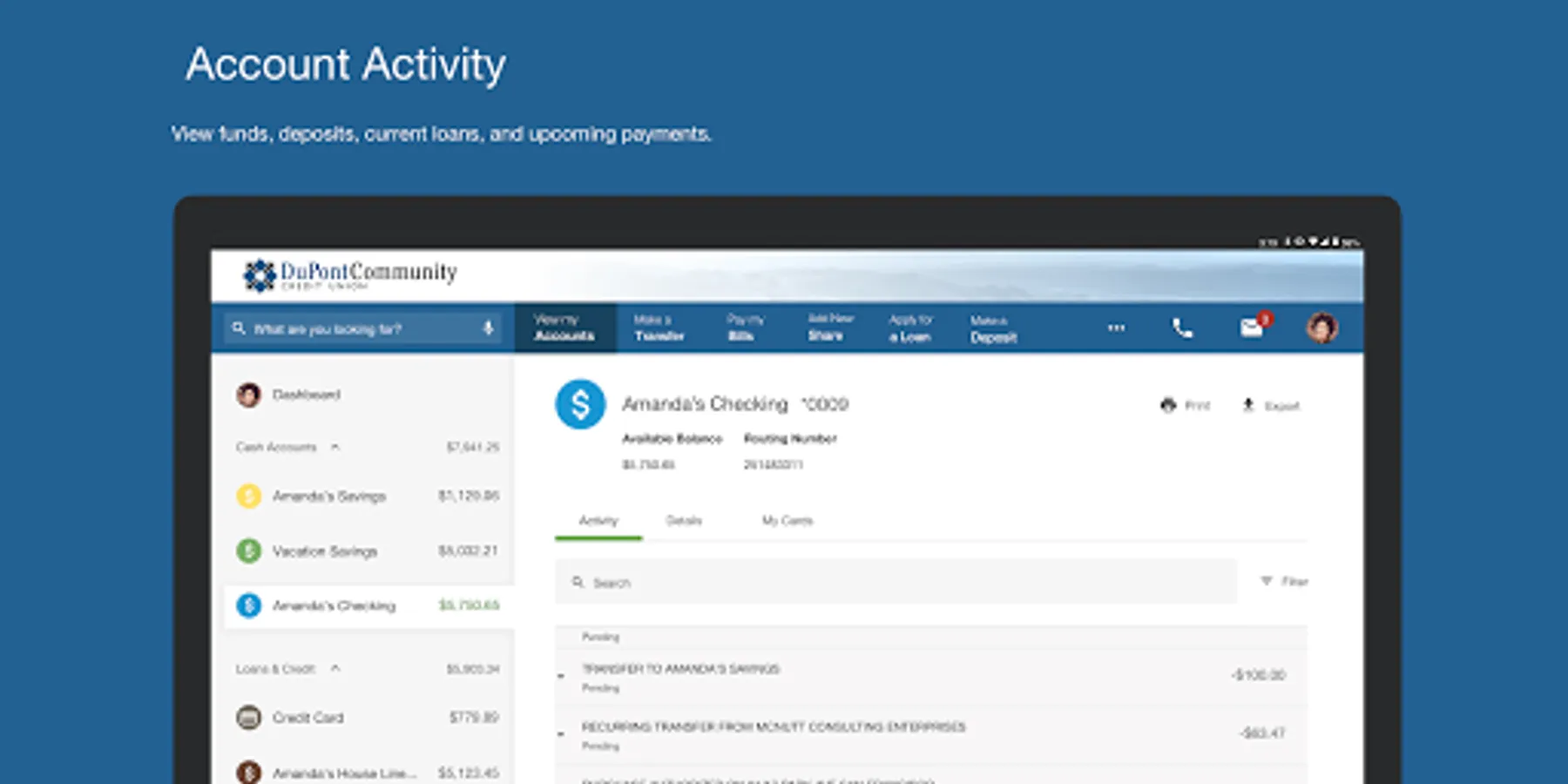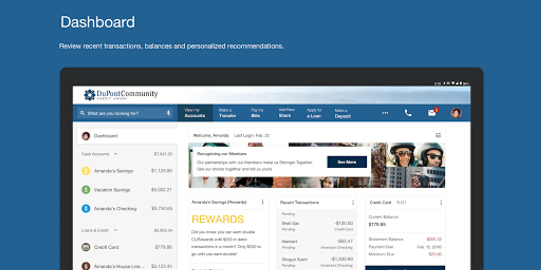 The DuPont Community Credit Union Mobile App provides secure, convenient, around-the-clock access to your account information. Save a trip to the branch by managing your finances from your mobile device.