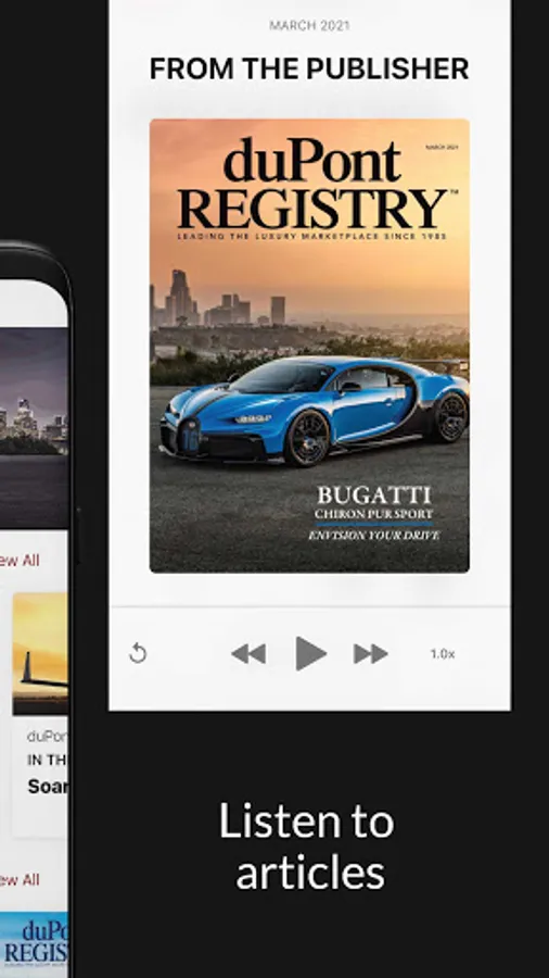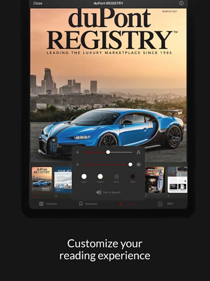 A Buyers Gallery of Fine Automobiles is created for owners, buyers and traders of exotic and high-performance automobiles. duPont REGISTRY provides affluent subscribers a panoramic display of lavish and luxury automobiles for sale, along with a broad selection of additional products of interest such as high-end and exotic automotive accessories, watches, collectibles and much more.