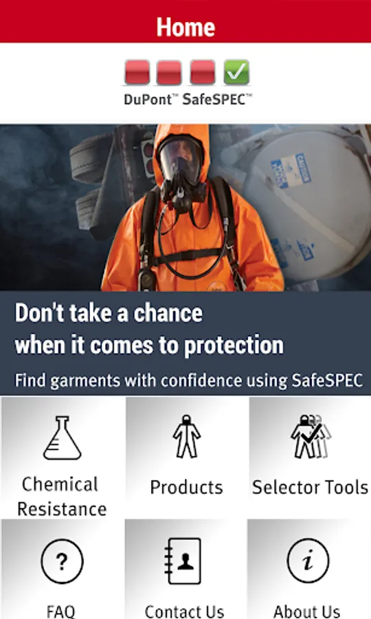 DuPont™ SafeSPEC™ mobile is one of the most comprehensive interactive online tools that helps safety professionals to make informed decisions about selecting chemical protective apparel.