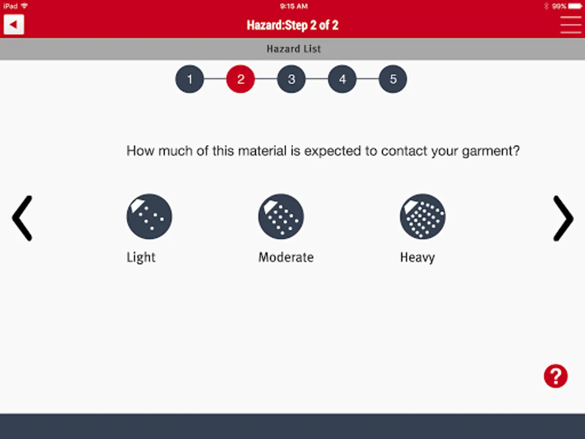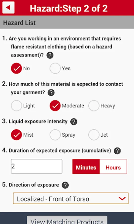 * SafeSPEC™ Mobile also features a check system that validates garment selections based on user input for specific hazard scenarios.