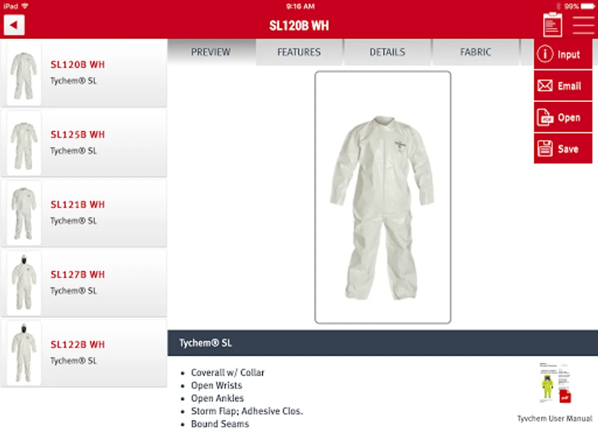 * SafeSPEC™ Mobile will give you the ability to see and learn about the current DuPont™ protective garment portfolio, which includes Tyvek®, Tychem® and ProShield®, including an image, technical data, sizes available and features and benefits.