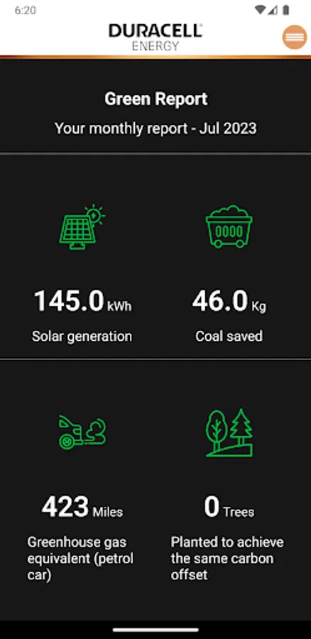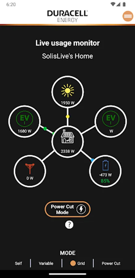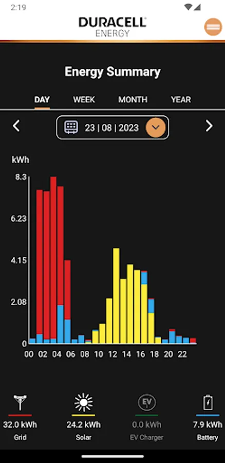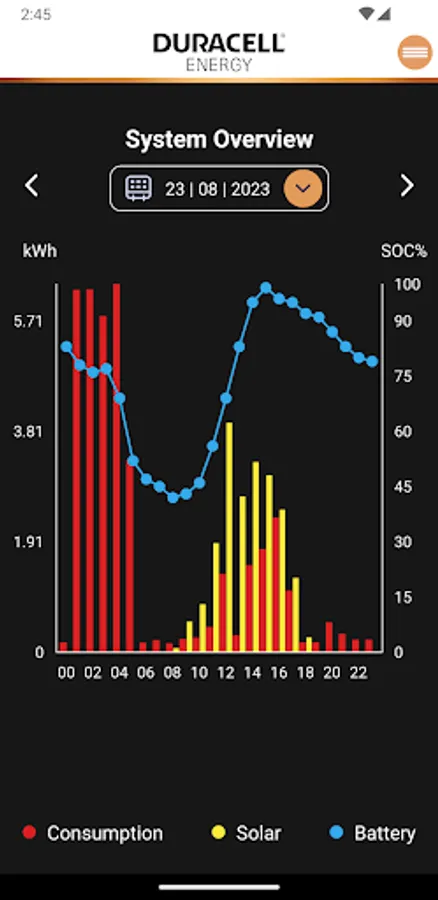 View your household consumption and the power flowing through you Duracell connected devices, giving you a clear understanding of solar generation, battery usage and grid energy usage.