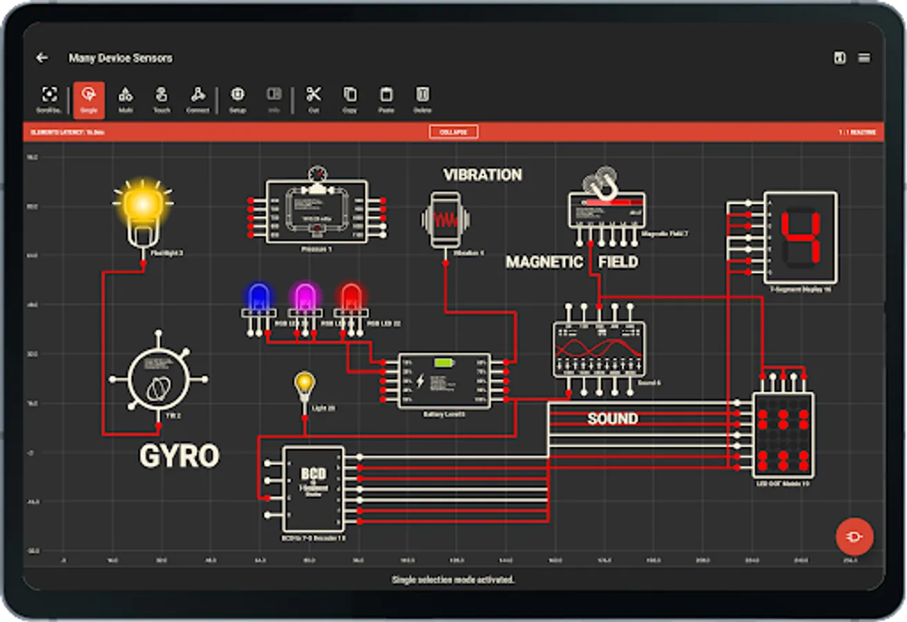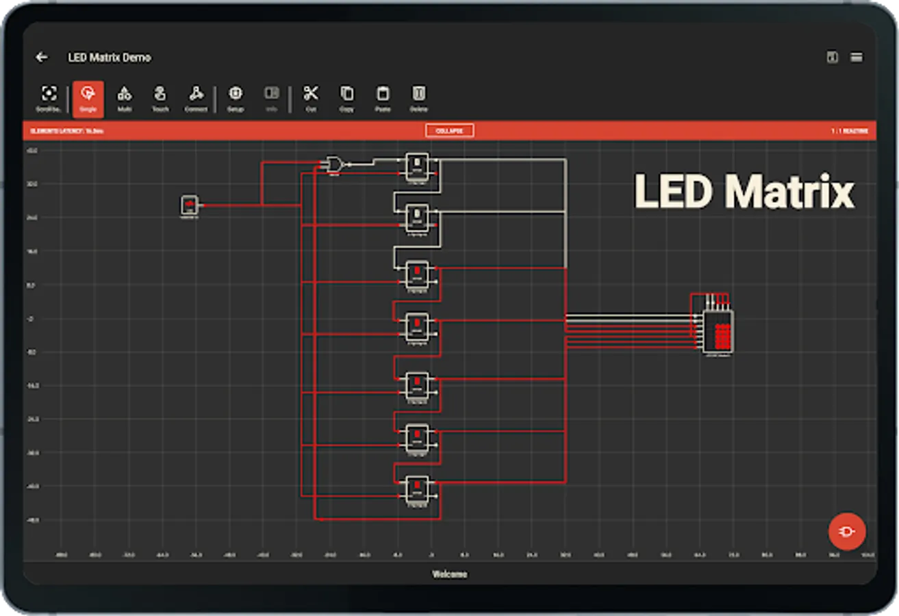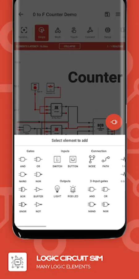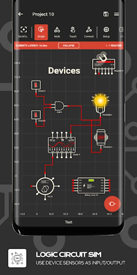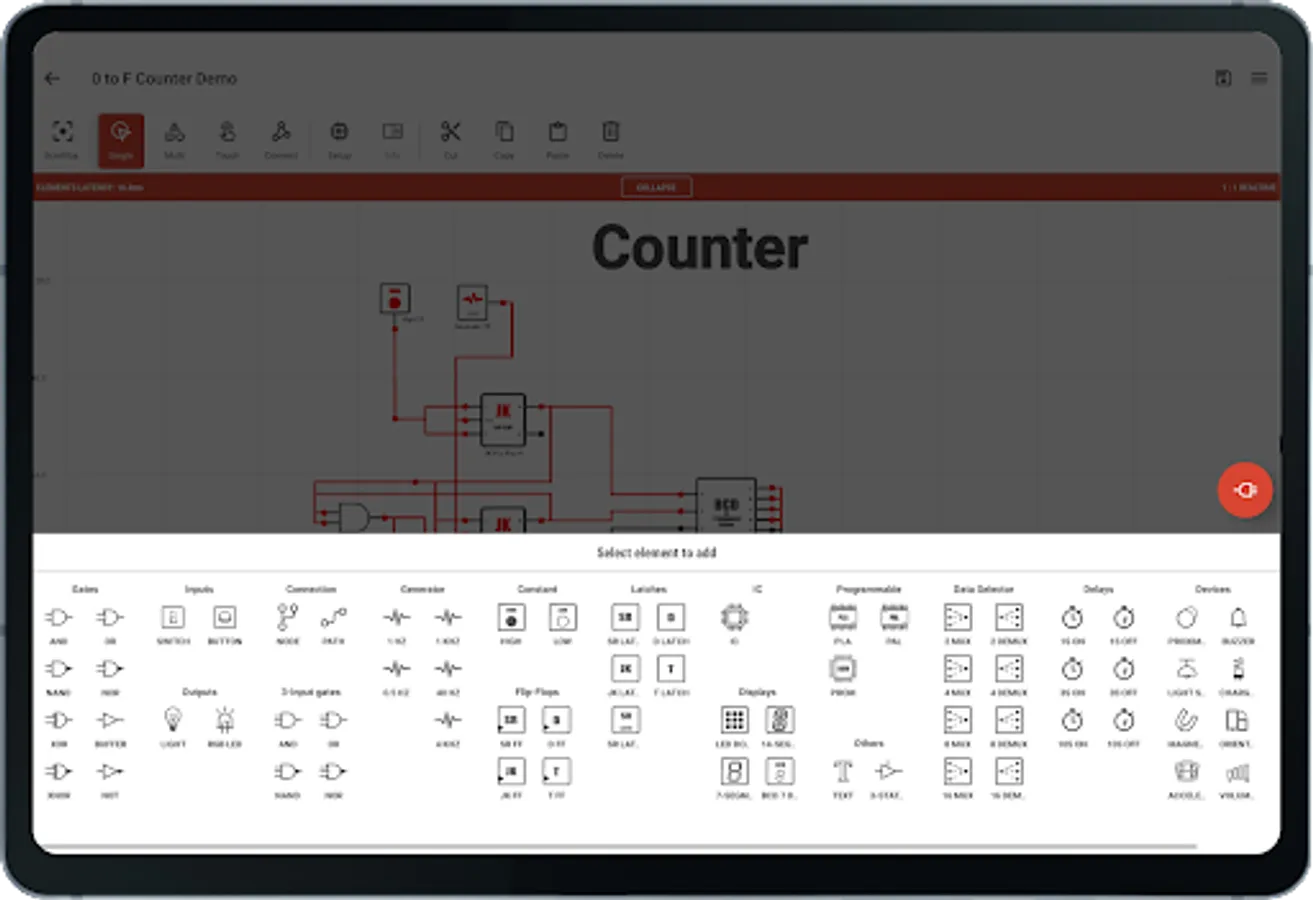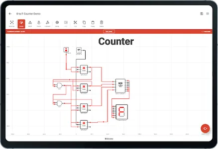 Create amazing logic circuits with all the provided electronics logic elements.